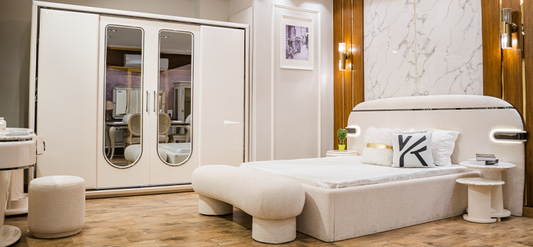 نفخر بالتزامنا باستخدام مواد عالية الجودة، بدءًا من الأقمشة والخشب والألواح الزجاجية و الإكسسوارات المستخدمة في تشكيل المرايا وخزائن الملابس و حتى المقابض، كل ذلك لنمنحك أفضل جودة.