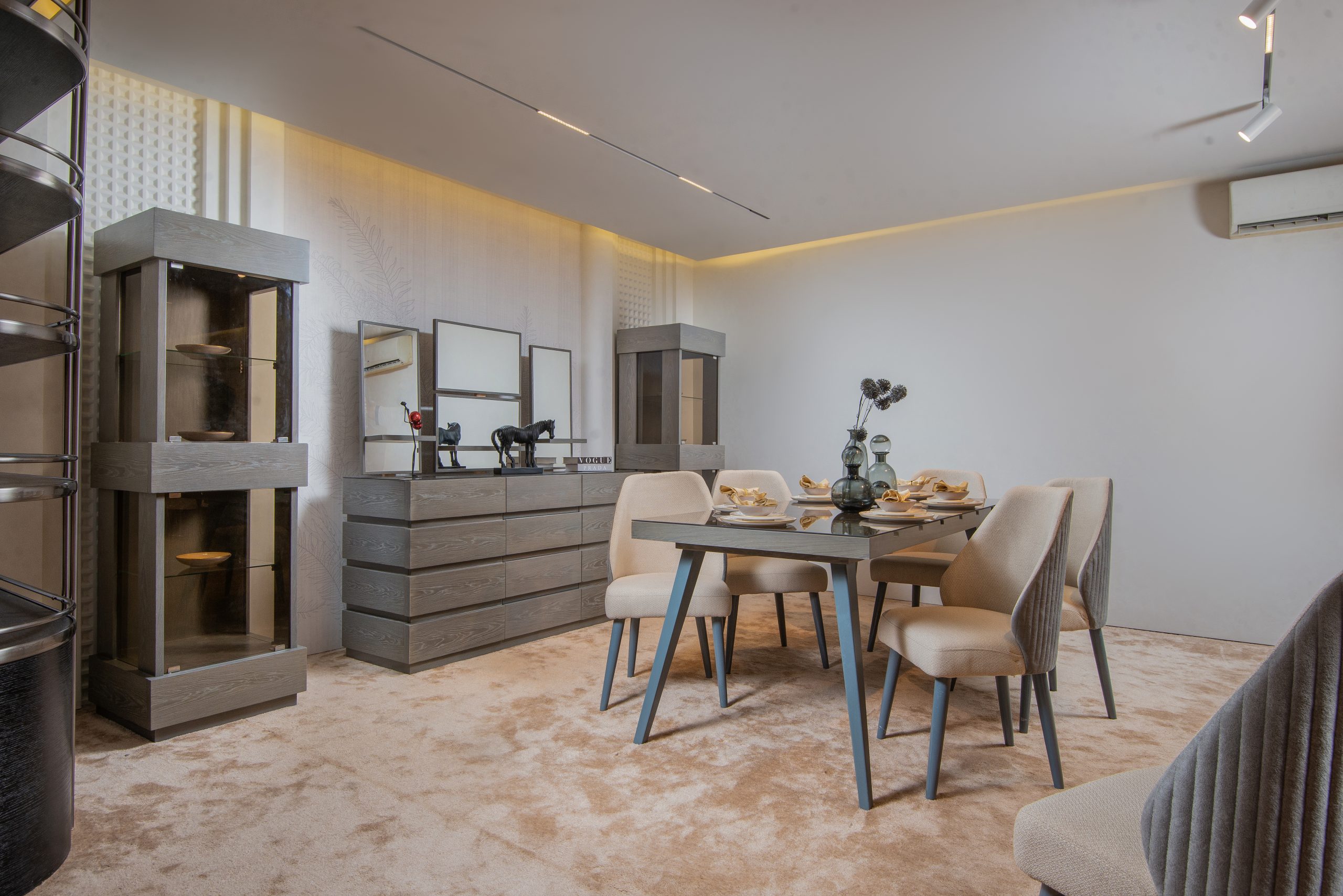 Using the mono-tone palette to evoke minimalism and simplicity, while creating a serene vibe using silvery shades and Italian accessories that redefine tranquility, all introduced with our Silvia dining collection.